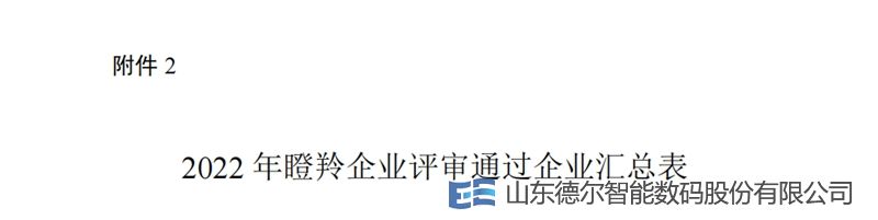 德爾公司榮獲2022年山東省“瞪羚”企業(yè)稱號