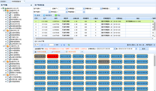 系統管理:熱表型號、廠家管理、報警條件、報警優先級顏色、分段費率、費用價格表、集中器、采集器、DTU、熱表管理、結構管理、運行參數設置、抄表時間設置等。