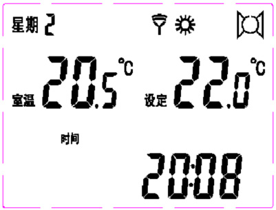 安裝在用戶內(nèi),液晶顯示,可以顯示室內(nèi)溫度和設(shè)定溫度;(圖為顯示界面)